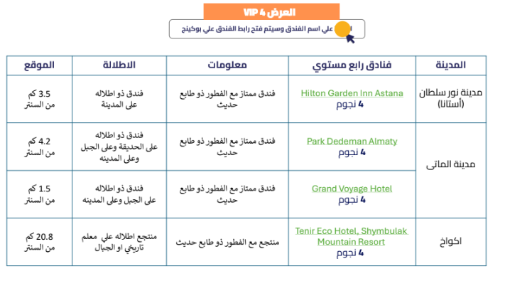 5 ليالي ألماطي – 3 ليالي نور سلطان.