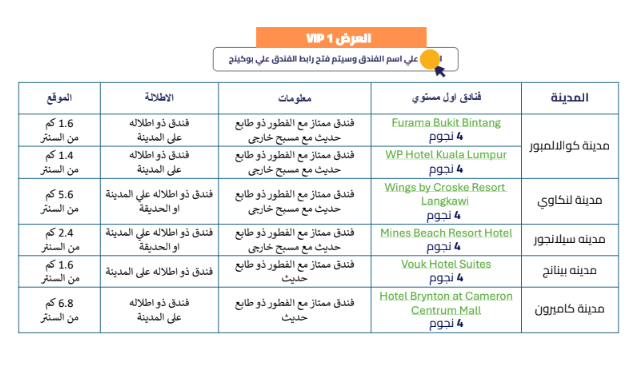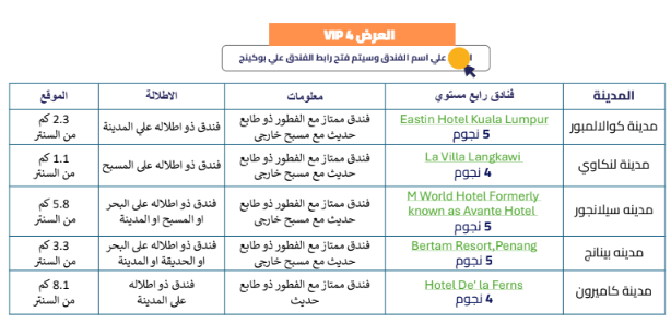• 2 ليلة سيالنجور – 3 ليالي لنكاوي – 4 ليالي كوالالمبور