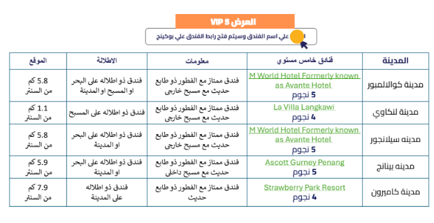 • 4 ليالي سيالنجور – 2 ليلة بينانج – 3 ليالي لنكاوي – 5 ليالي كوالالمبور
